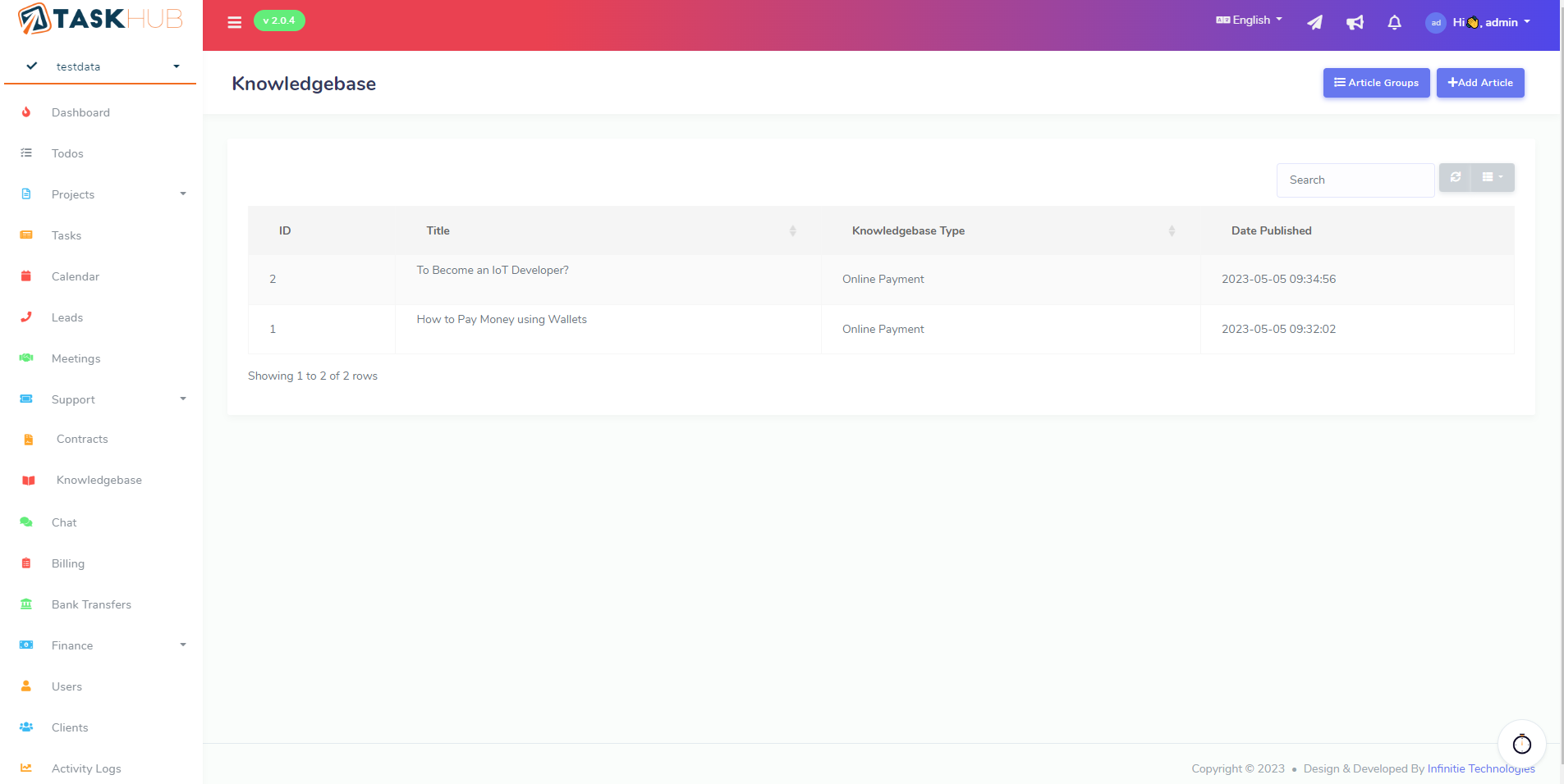 Here you can Add, View, Edit & Delete Knowledgebase from worspace.