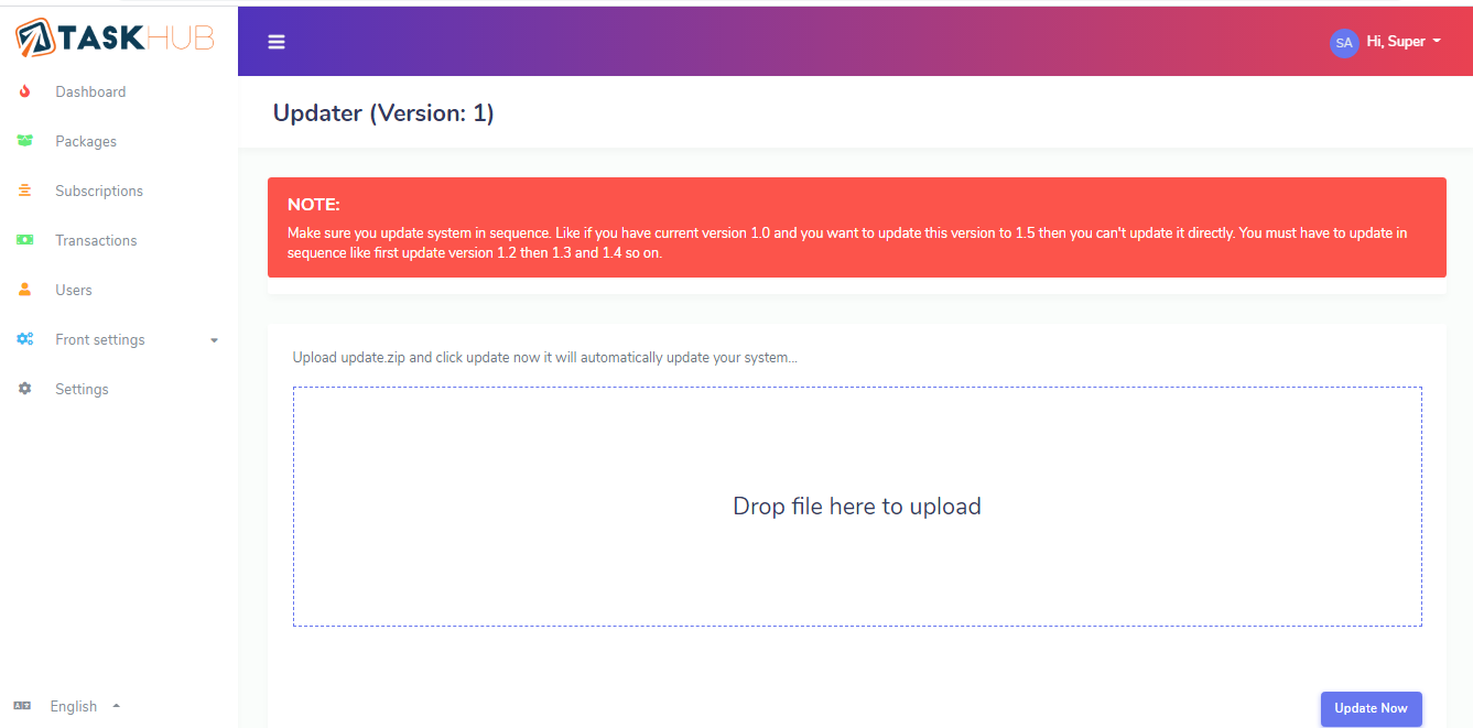 NOTE : Make sure you update system in sequence. Like if you have current version 1.0 and you want to update this version to 1.5 then you can't update it directly. You must have to update in sequence like first update version 1.2 then 1.3 and 1.4 so on.